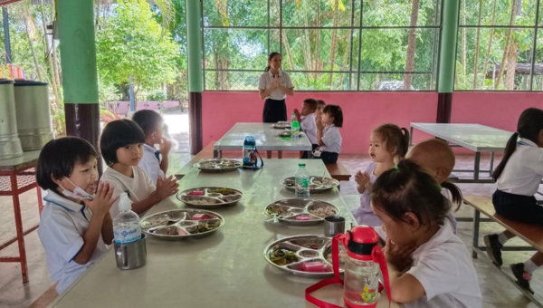 มูลนิธิออมไทย สนับสนุนข้าวสารที่ใช้สำหรับอาหารกลางวัน โดยจัดซื้อจากสหกรณ์การเกษตร เพื่อช่วยลดภาระค่าใช้จ่ายอาหารกลางวันและ เพื่อให้โรงเรียนนำมาประกอบอาหารกลางวันให้กับเด็กๆ ซึ่งโครงการนี้เริ่มต้นขึ้นตั้งแต่ ปี พ.ศ. 2565 และยังดำเนินการต่อเนื่องมาจนถึงปัจจุบัน (พ.ศ.2567)